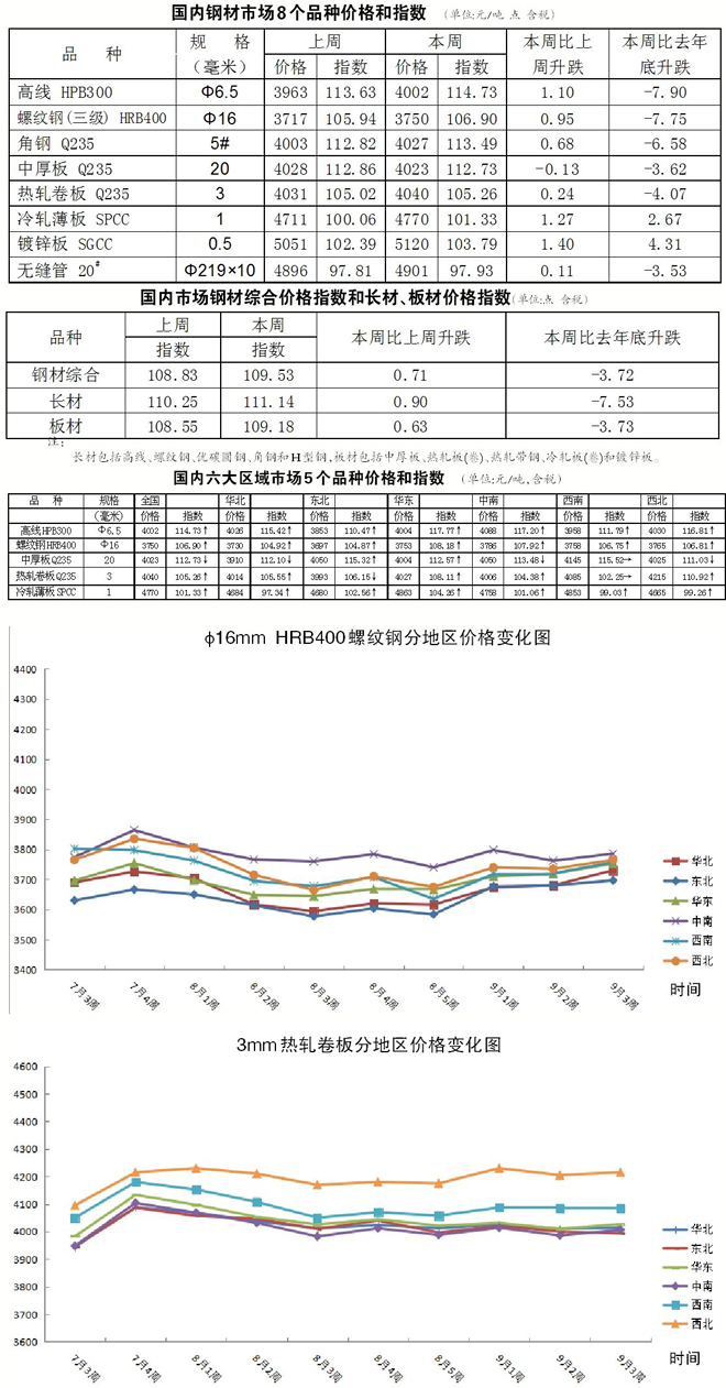 國內鋼材綜合價格指數環比上升0.71點 2023年9月18日—2023年9月22日