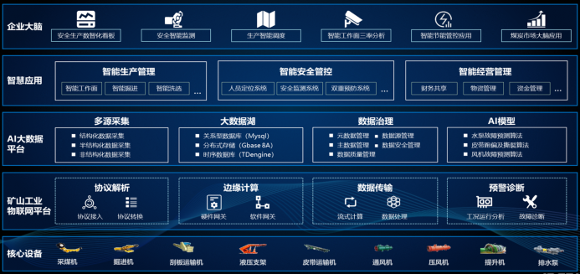當前,國家推進煤炭供給側結構性改革,煤炭行業開啟了新的一輪產業結構調整。礦山企業數字化、智能化、綠色化全麵提速,成為推進煤炭行業數字化轉型的必然選擇;將人工智能、雲計算、大數據等新一代信息技術應用於礦山采掘、運輸、洗選、銷售、經營管理等各個環節,成為智慧礦山建設的核心任務。浪潮認為,企業數字化轉型的目標是打造智慧企業,“ERP+IoT+AI大數據”是推進礦山行業數字化轉型的重要策略。浪潮智慧礦山解決方案是以應用為導向、數據為核心,以“精益運營、智慧管控”為目標,通過IoT聯通礦山各類設備,通過ERP夯實礦山信息化最後一公裏,通過AI大數據模型實現礦山智慧運營,構建礦山企業大腦,賦能礦山企業智慧管控及科學決策,智領礦山企業數字化轉型的新征程。
