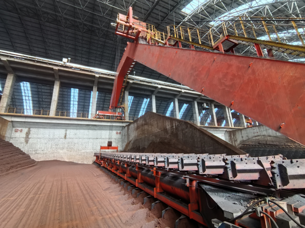 本鋼北營公司“智慧料場”於2023年11月份正式投入運行,現場設備包括C型料場卸料機2台、刮板機3台、堆料機1台、混勻庫取料機2台。該“智慧料場”創造性地提出了原料場智能管控一體化平台架構及流程優化決策方法,旨在實現原料場從受卸到生產用戶的全自動作業。