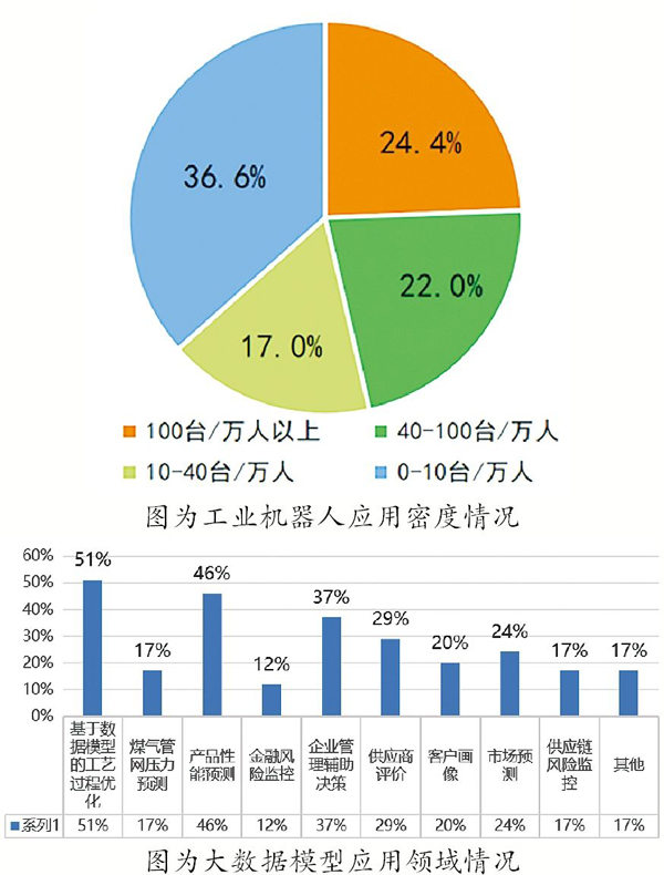 技術應用方麵。在工業機器人應用方麵,第一梯隊企業為230台(套)/萬人,第二梯隊企業為67台(套)/萬人,第三梯隊企業為15台(套)/萬wan人ren。在zai智zhi能neng檢jian測ce及ji感gan知zhi設she備bei方fang麵mian,應ying用yong鋼gang板ban表biao麵mian缺que陷xian自zi動dong識shi別bie的de企qi業ye數shu量liang最zui多duo,其qi次ci為wei應ying用yong鋼gang水shui成cheng分fen檢jian測ce,而er應ying用yong金jin相xiang自zi動dong識shi別bie與yu分fen級ji、液位檢測的企業相對較少。