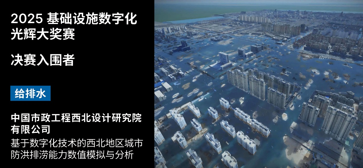 在城市防洪排澇能力項目建設中,中國市政工程西北設計研究院有限公司團隊創新性地采用“實景模型+管網BIM+水動力模型”三位一體的技術體係,通過無人機和管線機器人采集數據,利用iTwin Capture進行厘米級精度的實景建模,生成可視化水淹模型。“這個模型不僅能預測哪裏會被淹、淹多久,還能精確計算兩小時退水時間內能否排淨積水。” 該院數字化中心主任馬迪強調,這種“可視化說服力”對政府決策至關重要。