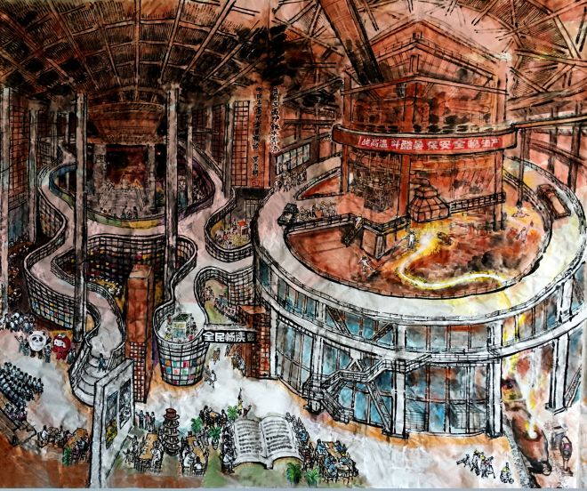 昔日三高爐鐵水奔流,今日三高爐全民暢讀》國畫 羅崇耕首鋼