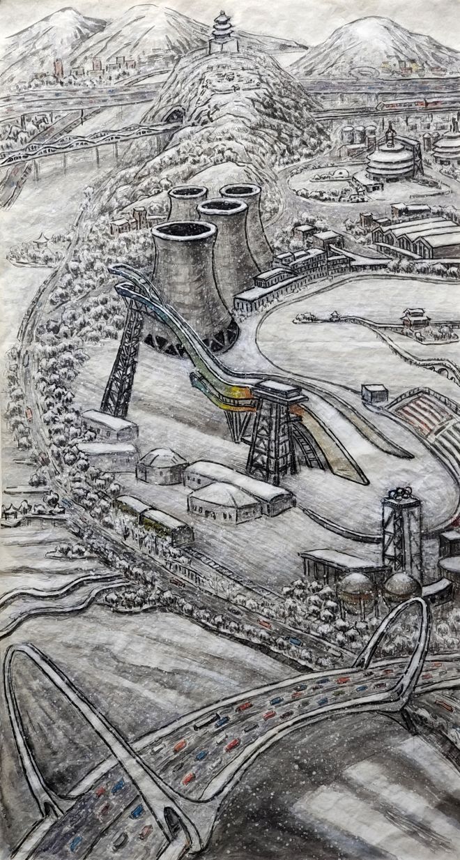 永定河畔》國畫 蘭春明首鋼