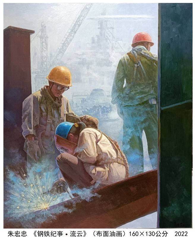 《鋼鐵紀事.流雲》油畫 朱宏忠武鋼