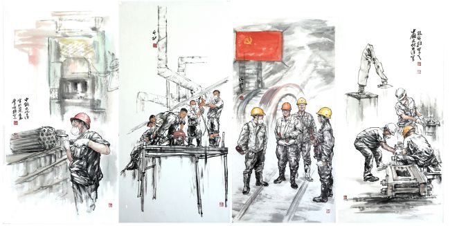 勞動者組畫》國畫 孫曉材中鋼