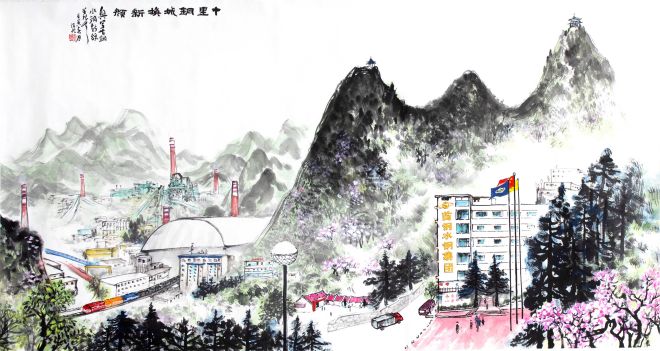 《十裏鋼城換新顏》國畫 顧源先(首鋼)